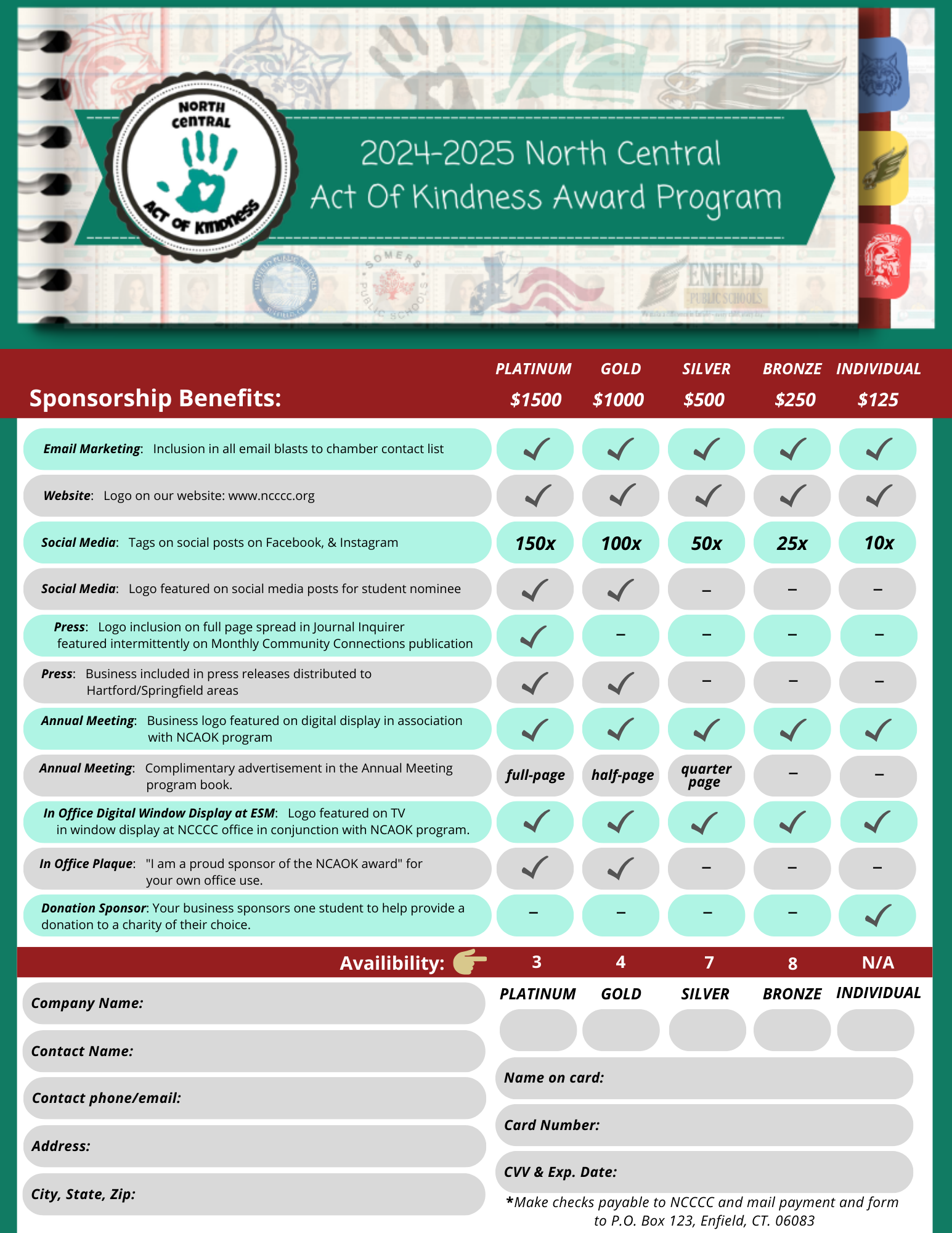 Become a 2024-2025 Sponsor of the North Central Act of Kindness Award Program, and associate YOUR business with the kindest award program in the region!